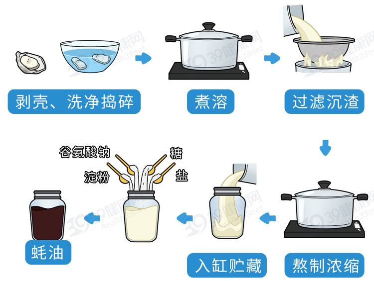 蚝油一般是将生(shēng)蚝(牡蛎)蒸煮汁水(shuǐ)濃縮或直接酶解生(shēng)蚝肉,再放入糖、鹽、澱粉等其他原料熬制(zhì)而成的調味品。